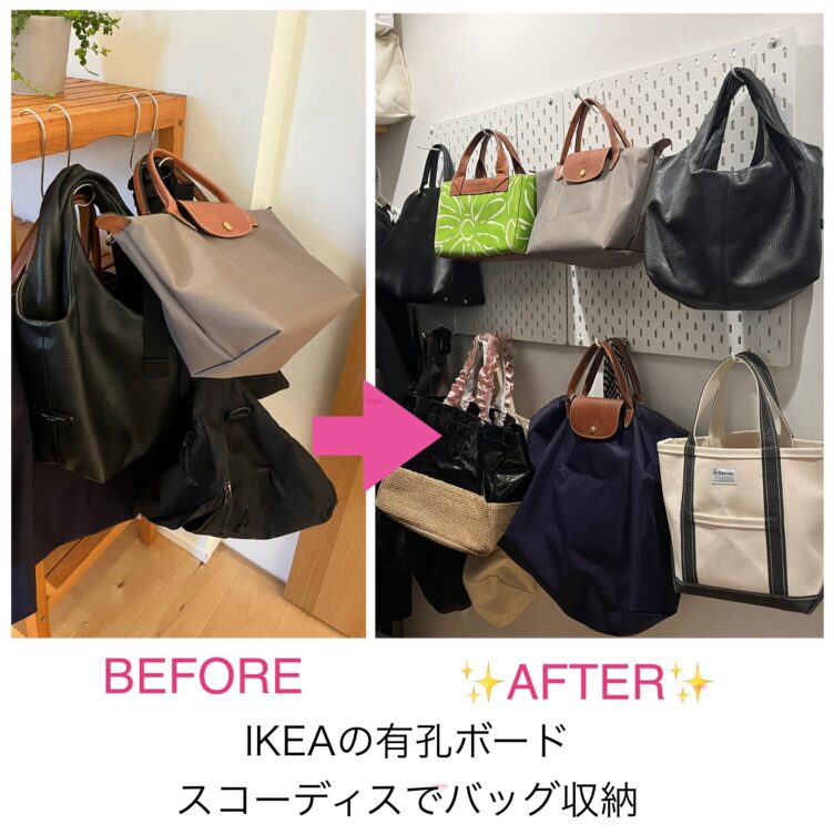 IKEA有孔ボードスコーディス(SKADIS)でバッグ収納|クローゼットの壁面を有効活用