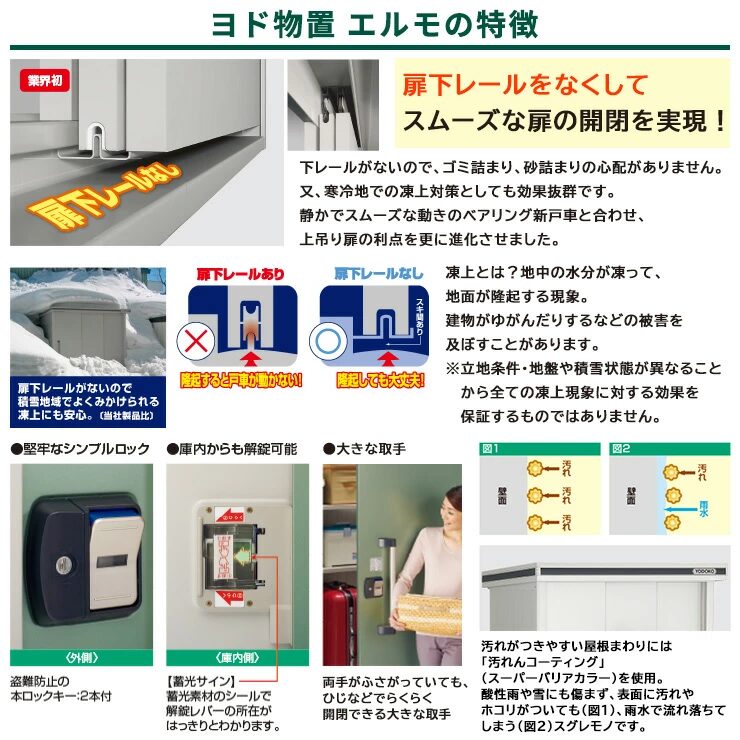 ヨド物置の「エルモ」は、使いやすさと安定感に定評のあるシリーズ。
