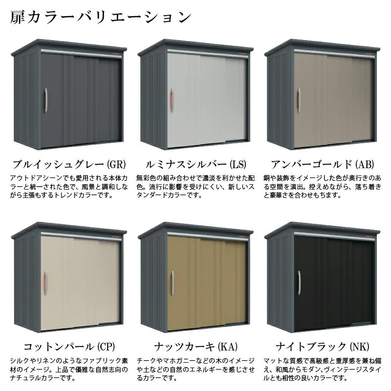 見た目も「ブルイッシュグレー」など落ち着いた色味のラインナップがあり、少しでもマツモト物置の雰囲気に近づけたい方はこちらがイチオシです。